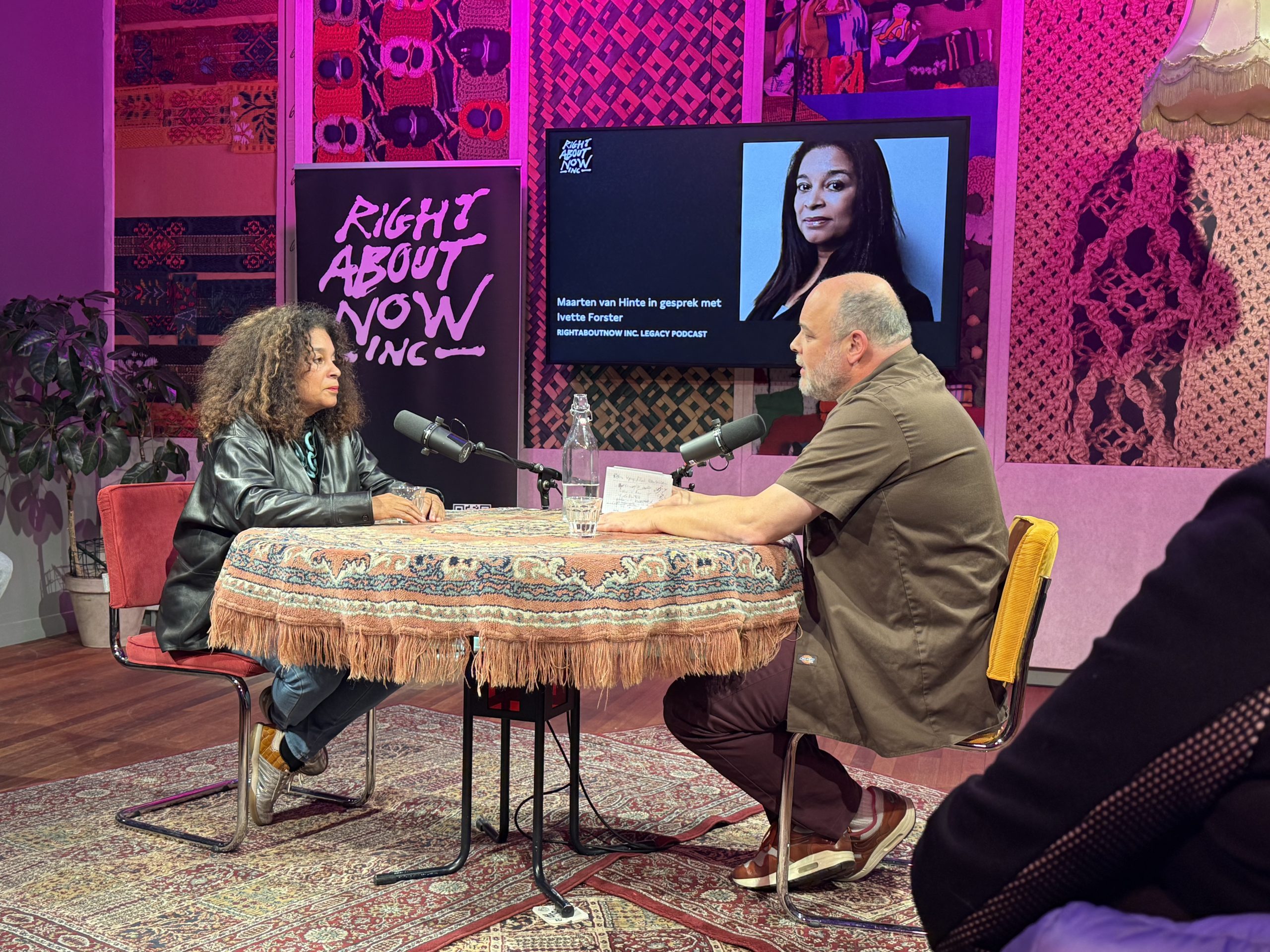 Forster vertelde over haar multiculturele achtergrond en hoe zij daarmee is omgegaan. Surinaams, Nederlands, Antilliaans: wat mag ze van zichzelf zijn en in welk hokje wil de maatschappij haar plaatsen? De setting van de podcast paste goed bij de vele kanten van Forster. Terwijl ze spraken over diversiteit, zaten ze aan een tafel met een tapijt erop. De vloer was volledig bedekt met oude Perzische tapijten, alsof je in een oud-Hollands bruin café zat.